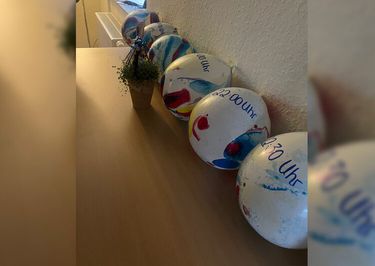 Am Abend startete unser Ballon-Ritual, ein durchgängiges Abendritual: Auf den Ballons waren jeweils Uhrzeiten notiert und im Inneren befand sich ein kleines Aktionskärtchen. Zu der jeweiligen Uhrzeit wurde der Ballon gemeinsam von den Jugendlichen zum Platzen gebracht und die Aktion umgesetzt.