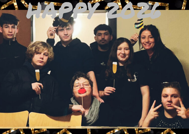 Um 19:00 Uhr schauten wir gemeinsam den Film „Der Stockmann“ – ein Film, der auch dann noch gut ankommt, wenn die Kids schon größer sind. Der Spruch des Abends lautete: „Sie tut so, als wäre sie wach“ – bezogen auf Britta. Um 20:00 Uhr ließ Joshua den Ballon platzen, der das Wachsgießen ankündigte. Um 20:30 Uhr knallte Kim den nächsten Ballon und gemeinsam schrieben wir unsere Wünsche für das neue Jahr 2026 auf. Um 21:00 Uhr wurden Spiele gespielt, ausgelöst durch einen weiteren Ballon, den Bern zerstörte. Um 22:00 Uhr enthielt der Ballon die Aktion: eine Kurzgeschichte gemeinsam erfinden, bei der jede Person einmal an der Reihe war. Yazn brachte diesen Ballon zum Platzen und alle machten mit. Um 22:30 Uhr machte Benny den Ballon kaputt, der die Aktion enthielt, Briefe zu schreiben, die im Jahr 2025 losgelassen werden sollen. Um 23:00 Uhr ließ Sarah, die Pädagogin, den letzten Ballon platzen. Es wurden viele lustige Gruppenfotos gemacht.